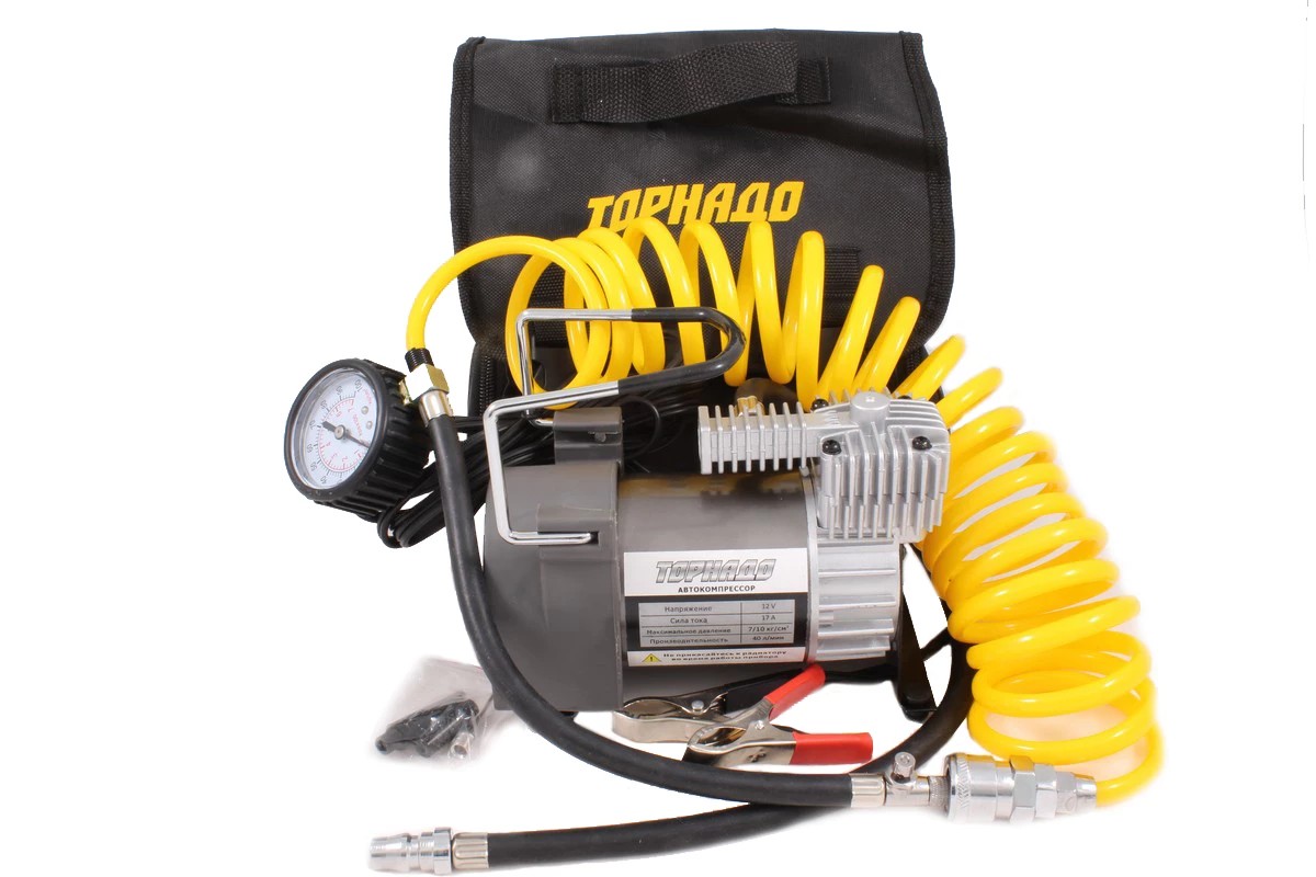 Компрессор поршневой TORNADO АС-600 40л/мин, гибк.шланг, в сумке, сброс давл., питан. от АКБ