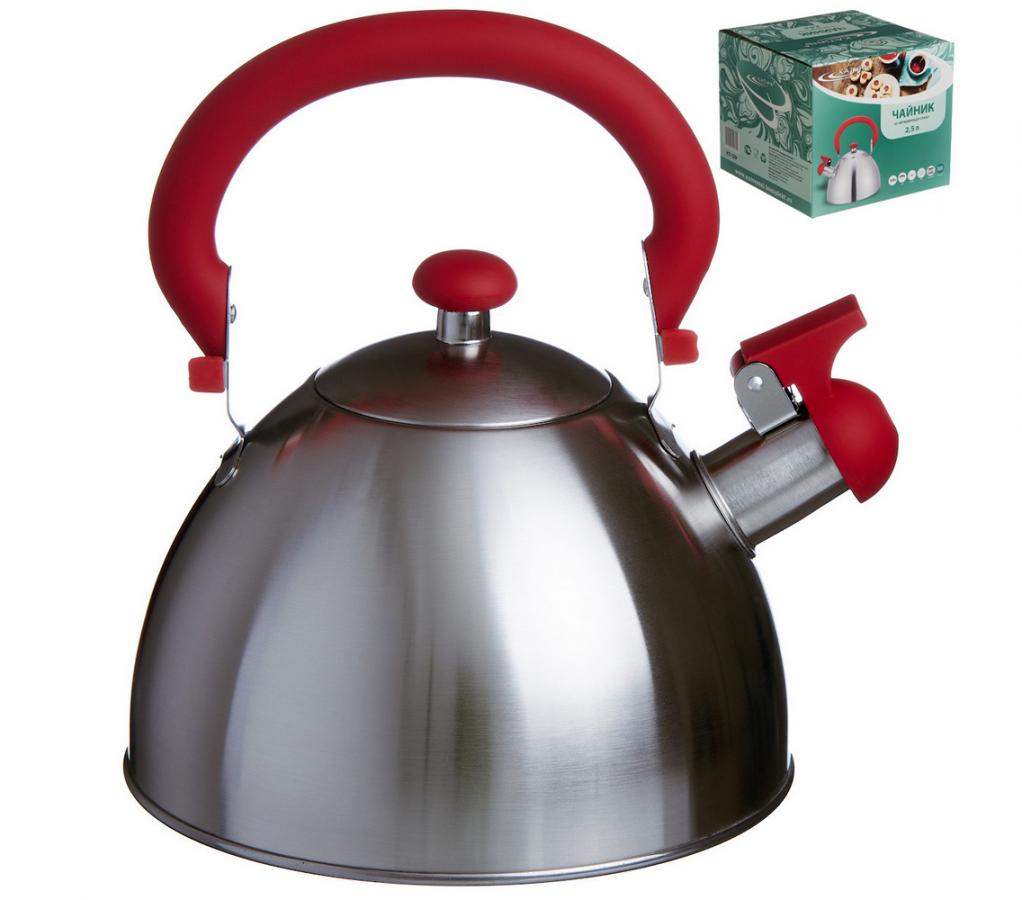 Чайник газовый 2,5л. КАТУНЬ КТ-129 ручка soft-touch красн., д/всех видов плит