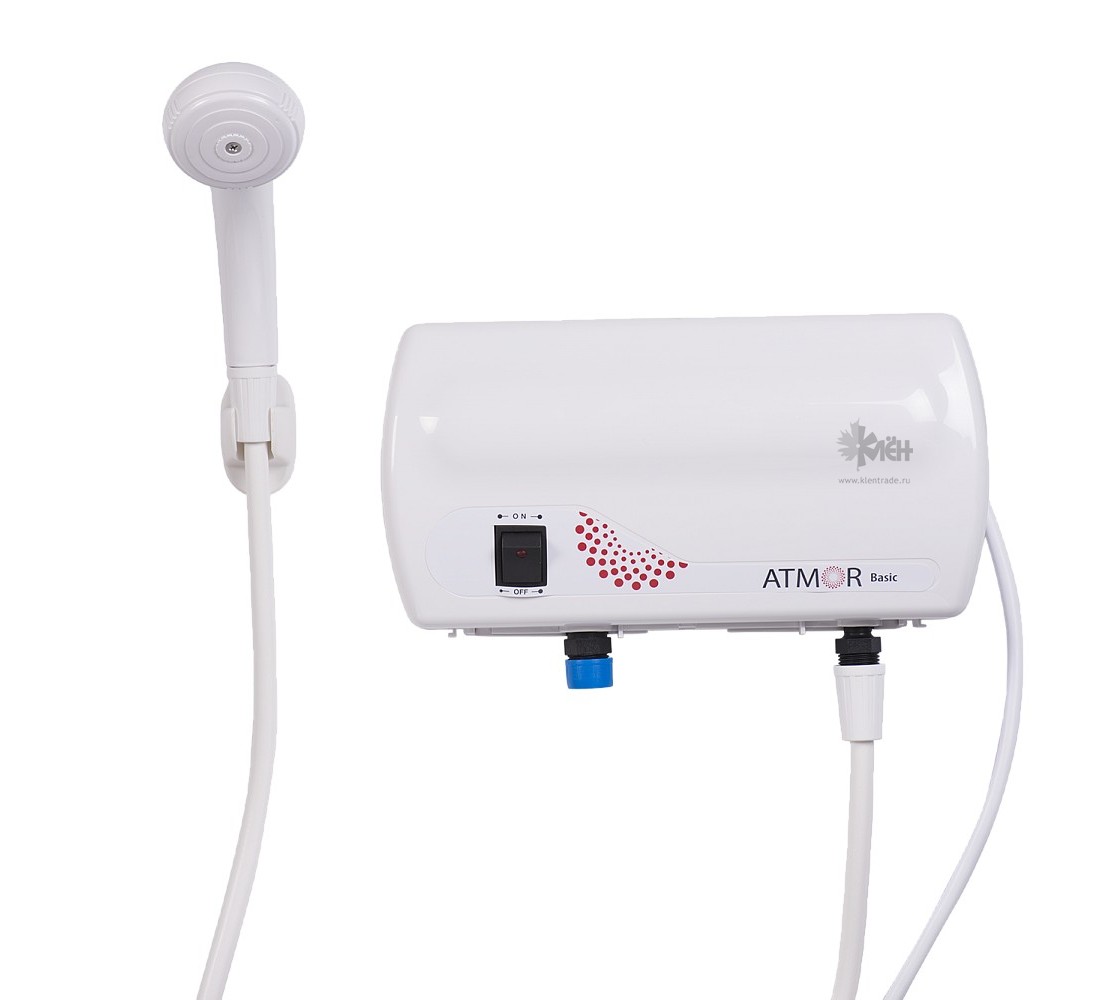 Водонагреватель Ariston Atmor BASIC 3.5 KW Shower используется для нагрева проточной воды, вода нагревается сразу при проходе через него. Номинальная мощность водонагревателя – 3.5 кВт, водонагреватель подключается к розетке.