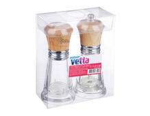 Набор для специй VETTA состоит из двух предметов: солонка и мельница для перца. Именно свежемолотые специи придадут насыщенный вкус и аромат вашему блюду. Прозрачный корпус поможет контролировать наполненность контейнера.