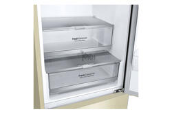 Двухкамерный холодильник LG GA-B509BEDZ с морозильником, расположенным в нижней части. Холодильник выполнен в стильном бежевом корпусе.