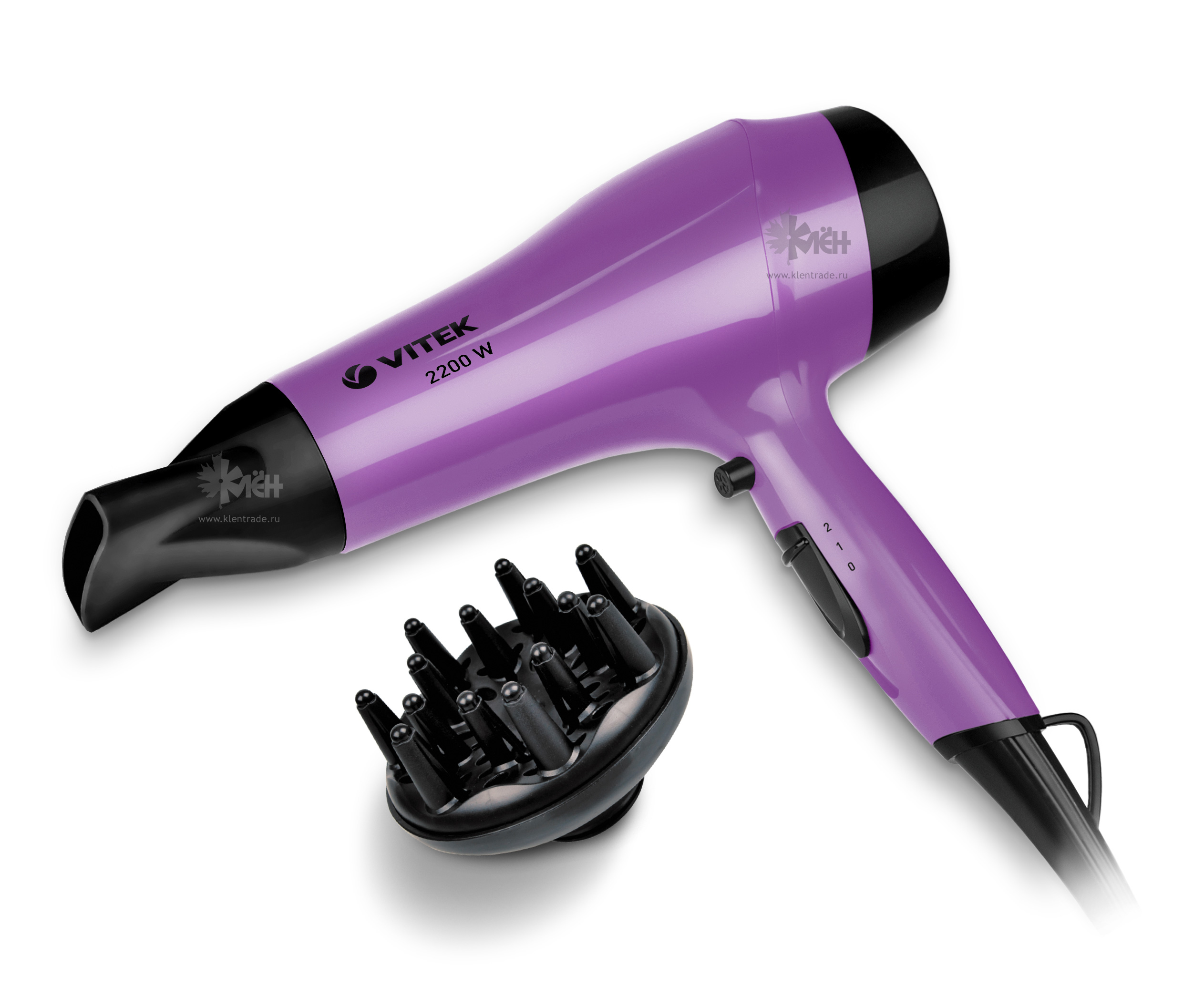 Не только высушить волосы, но и сделать красивую прическу поможет вам фен VITEK VT-2536 с мощностью 2200 Вт.