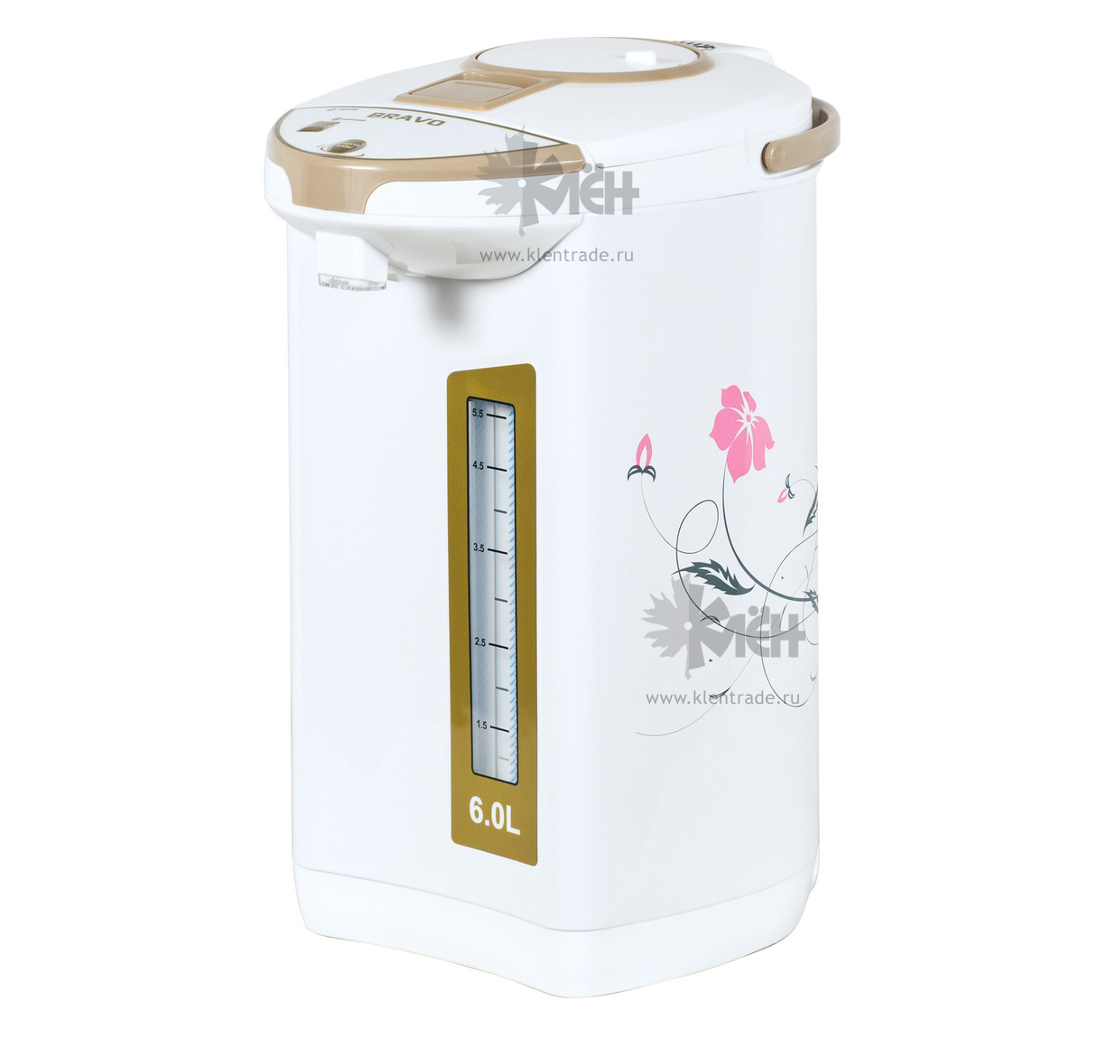 Термопот BRAVO TL-60F это кухонный прибор успешно сочетающий в себе функции чайника, термоса и кулера. Как и чайник, он нагревает воду, как термос, может поддерживать её температуру горячей. Стильный прибор прекрасно дополнит любой интерьер. Исполнение в белоснежном корпусе с эффектным рисунком нежной расцветки универсально. Не задумываясь можно смело приобретать BRAVO TL-60F как практичный подарок дорогим людям.
