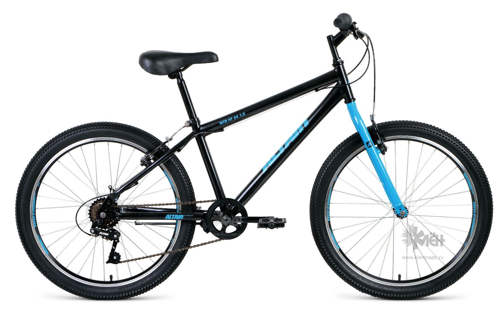 Велосипед 24" ALTAIR MTB HT 1.0 рост 14", 6ск. чёрный/голубой 2019-2020