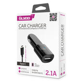 Автомобильное зарядное устройство Olmio с кабелем Type-C в комплекте поможет наполнить аккумулятор Вашего смартфона от прикуривателя.