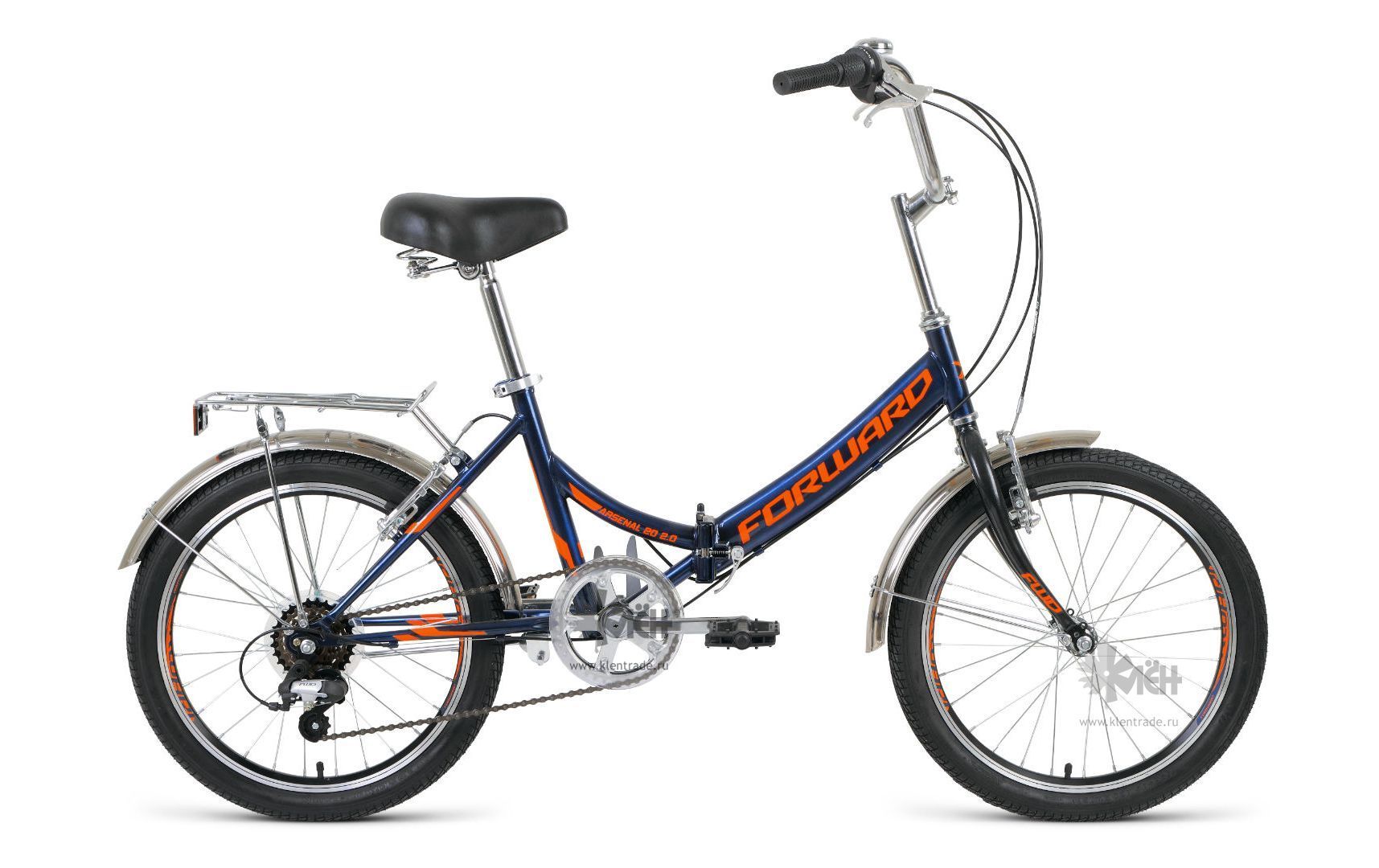 Велосипед 20" FORWARD Arsenal 2.0 складная рама, рост 14", 6ск. т.синий/оранжевый 2019-2020