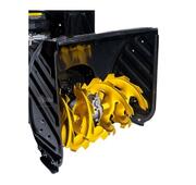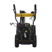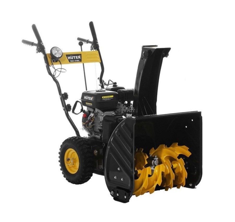 Благодаря глубокому протектору колеса не скользят при гололеде, обеспечивая хорошую проходимость машины. Поворот желоба регулируется специальным рычагом. Отличие данной модели - наличие фары.