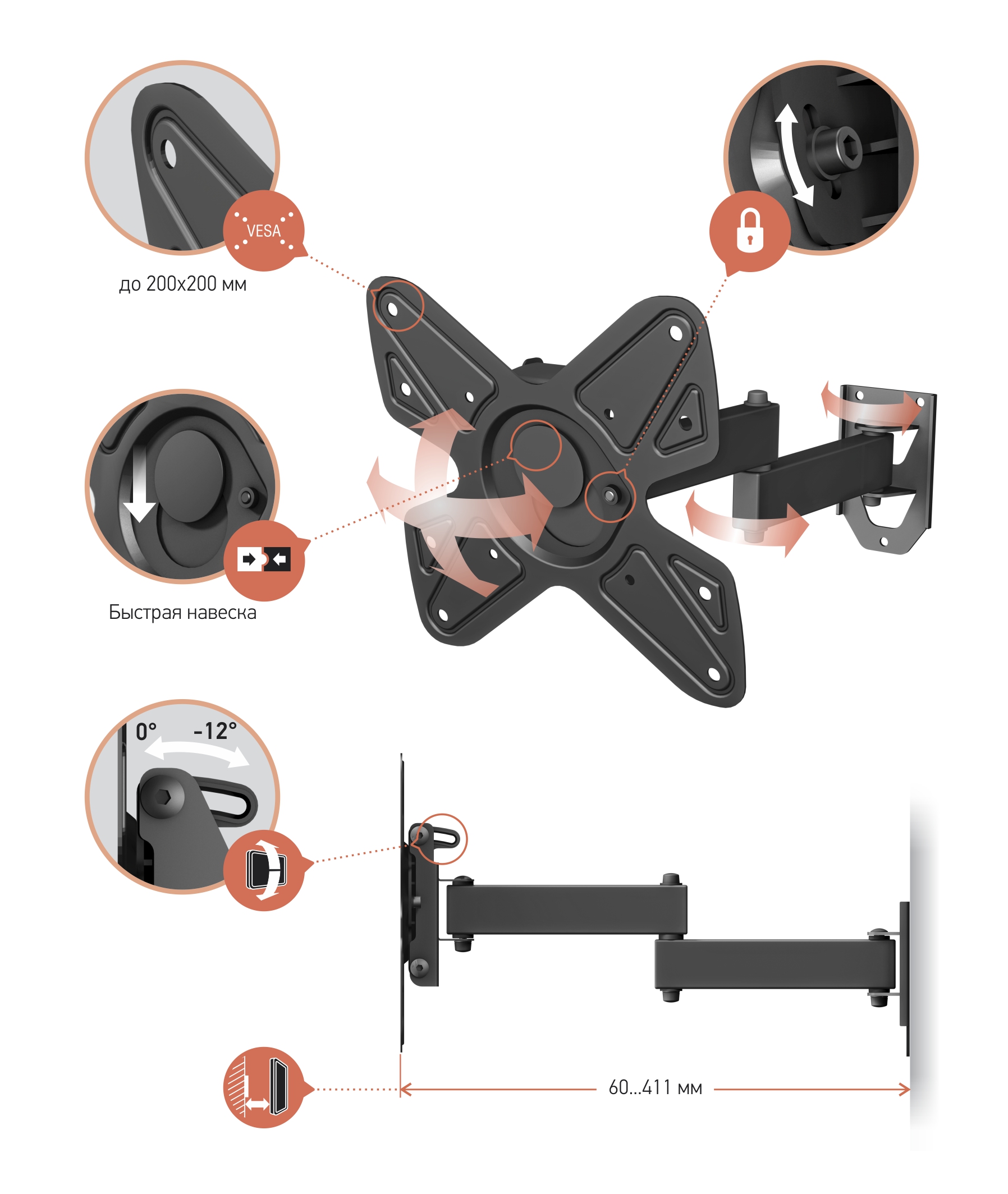 Кронштейн для LCD VOBIX VX 4014B (66-102см) до 15кг