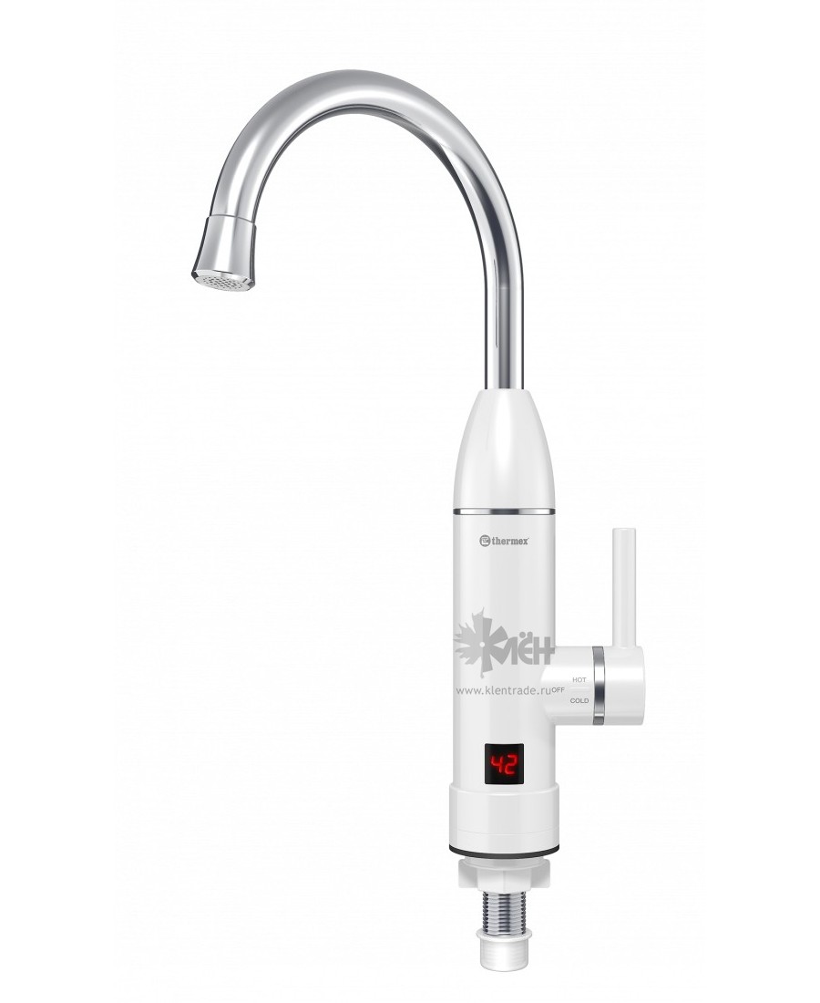 Водонагреватель Thermex Hotty 3000 используется для нагрева проточной воды, вода нагревается сразу при проходе через него. Информация о температуре отображается на дисплее. Номинальная мощность водонагревателя – 3 кВт, водонагреватель подключается к розетке.