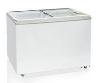 Морозильный ларь Бирюса 355ZQ объемом 315 литров со стеклянной крышкой, обеспечивает демонстрацию размещенного внутри товара, обладая большей площадью экспозиции и удобной для покупателя витриной.