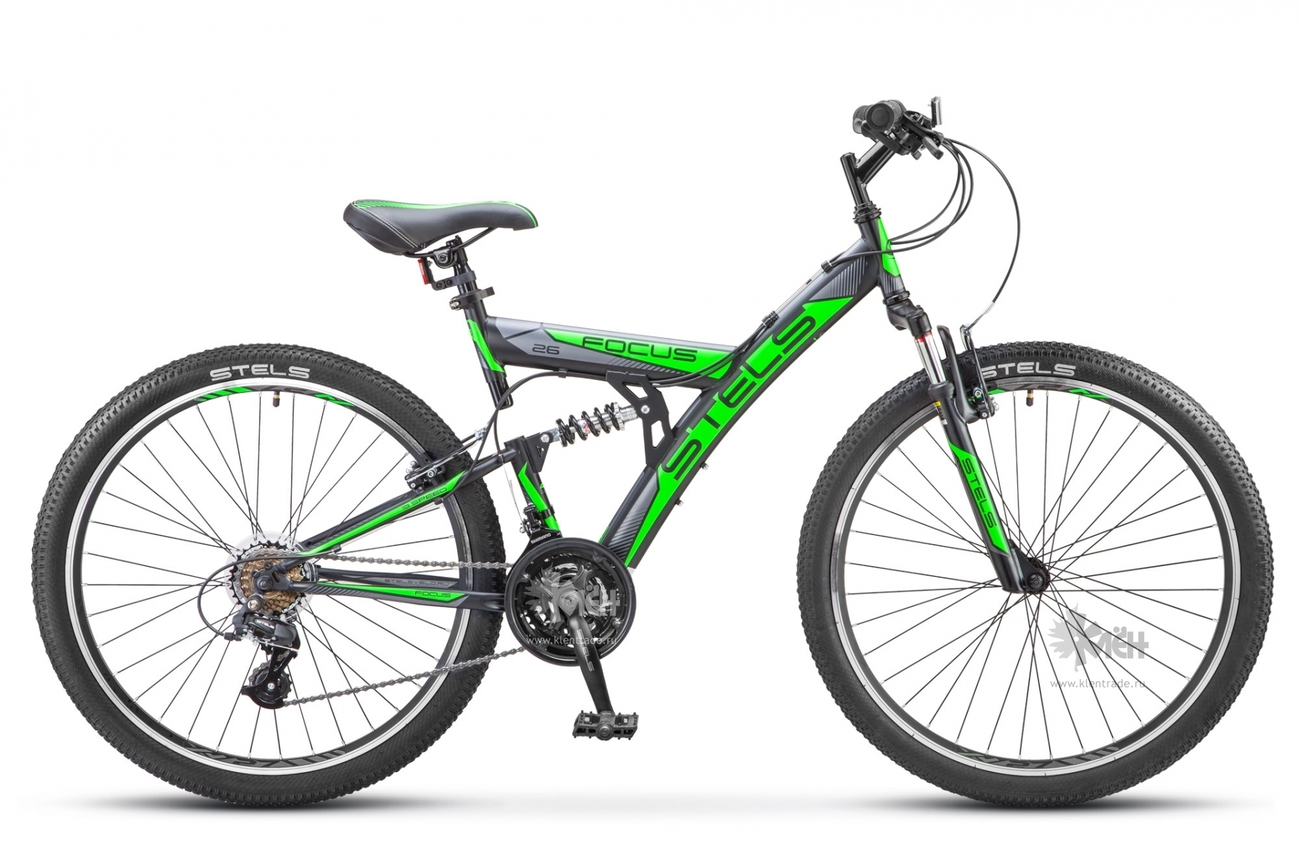 Велосипед 26" STELS Focus 18-sp V двухподвес, рост 18", 18ск., чёрный/зелёный