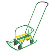 Санки дет.Ветерок-7 В7У/З2 зелёный, спинка, толкатель 2 полож., колёса