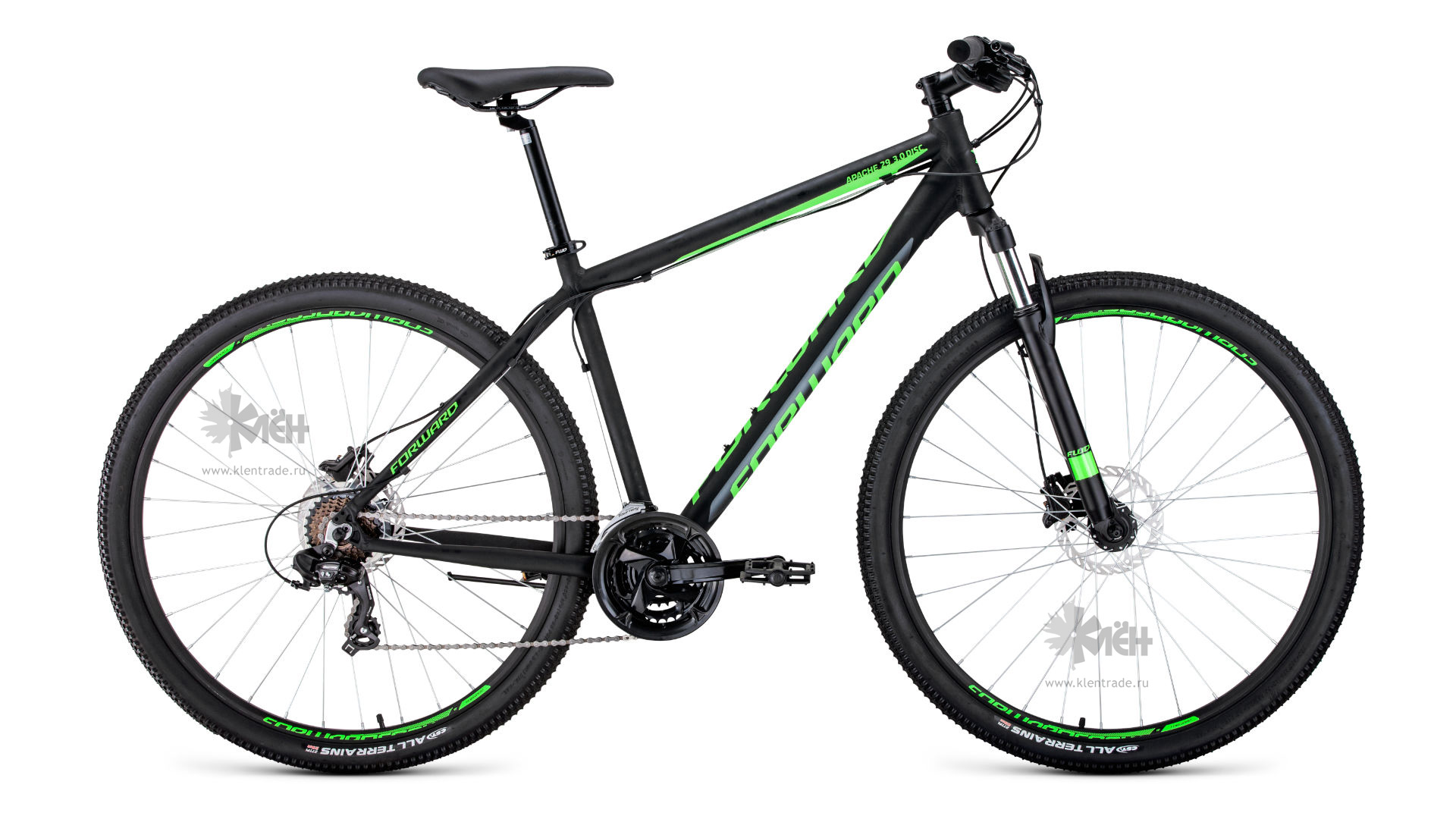 Велосипед 29" FORWARD Apache 3.0 disc рост 21", 21ск. чёрный/св.зелёный 2019-2020