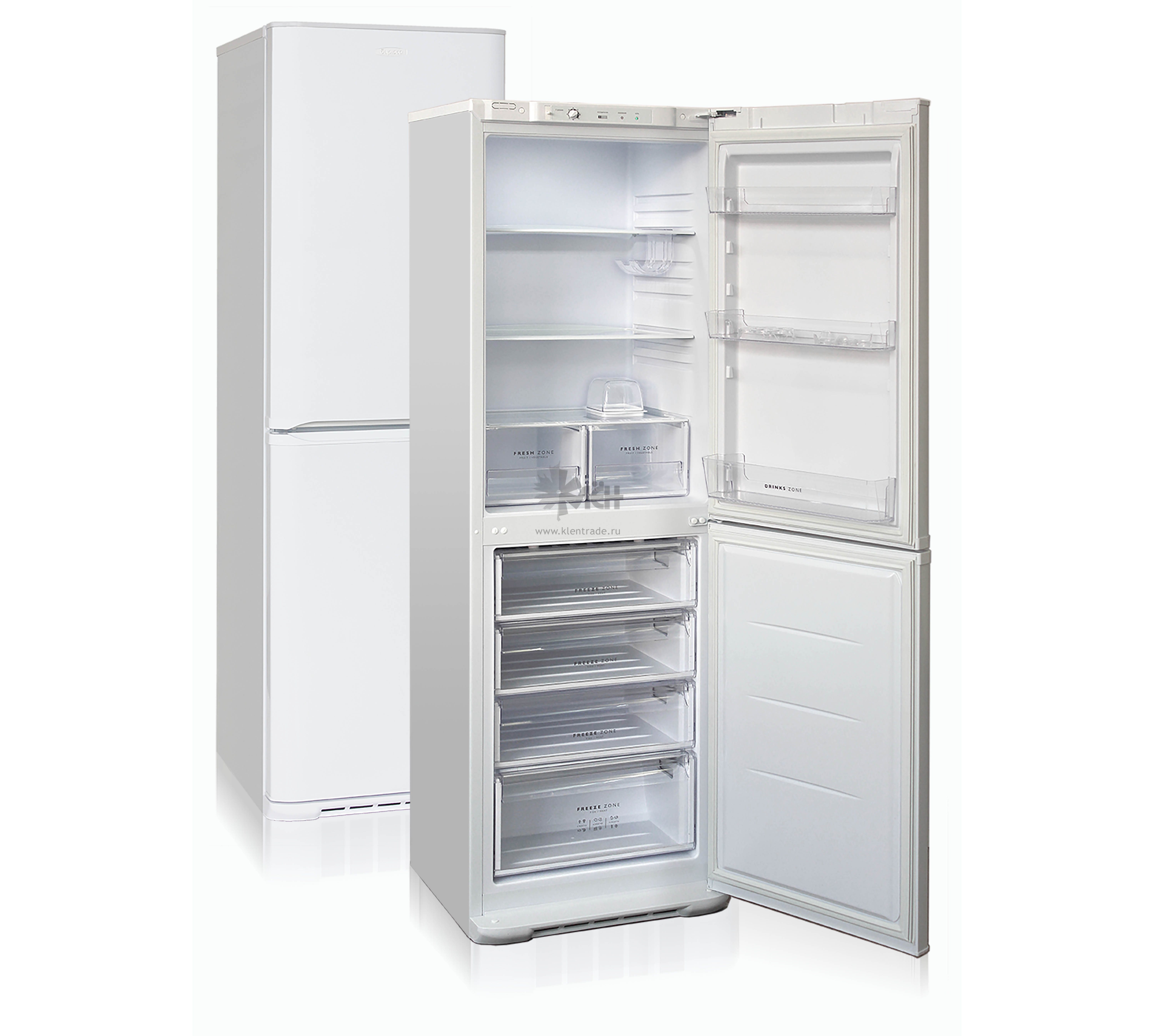 Двухкамерный холодильник Бирюса 631 выполнен в классической белой расцветке. Морозильная камера расположена в нижней части.