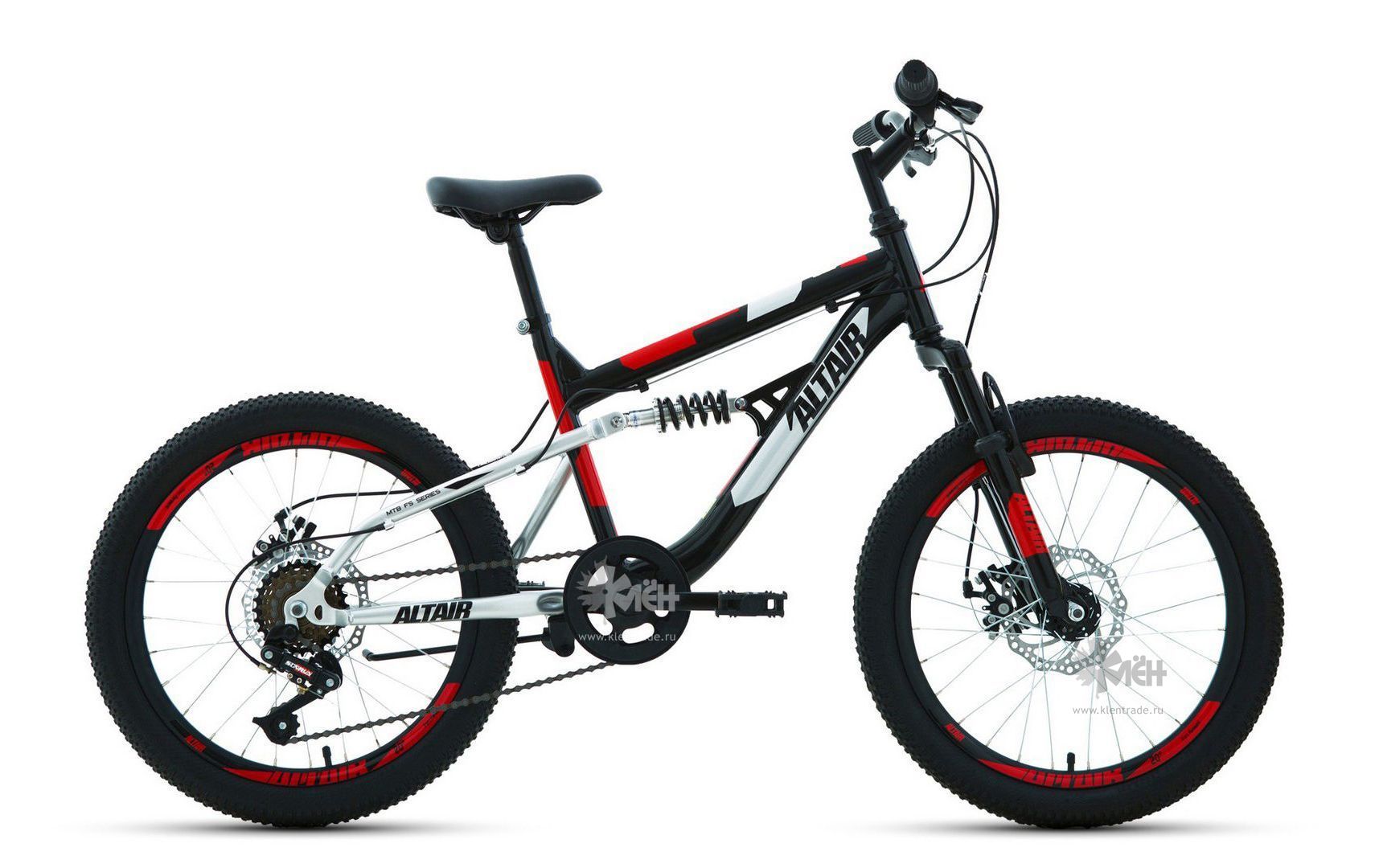 Велосипед 20" ALTAIR MTB FS disc двухподвес, рост 14", 6ск., чёрный/красный