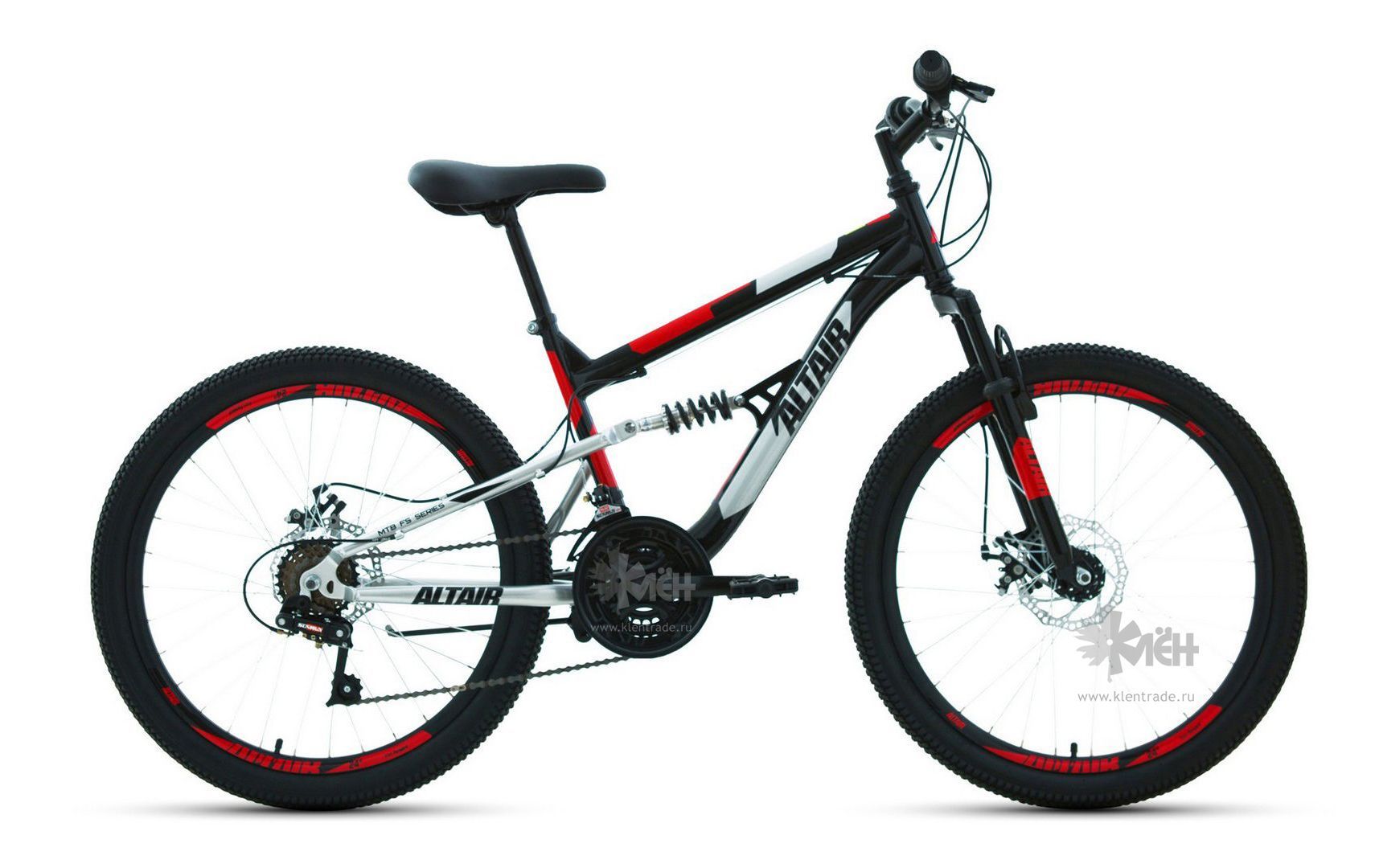 Велосипед 24" ALTAIR MTB FS disc двухподвес рост 15", 18ск., чёрный/красный