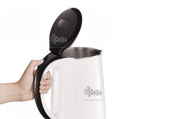 Благодаря двойным стенкам корпуса чайник не перегревается, и до него спокойно можно дотронуться рукой, не боясь обжечься. После закипания чайник в течение 30 минут поддерживает температуру воды в режиме термоса.