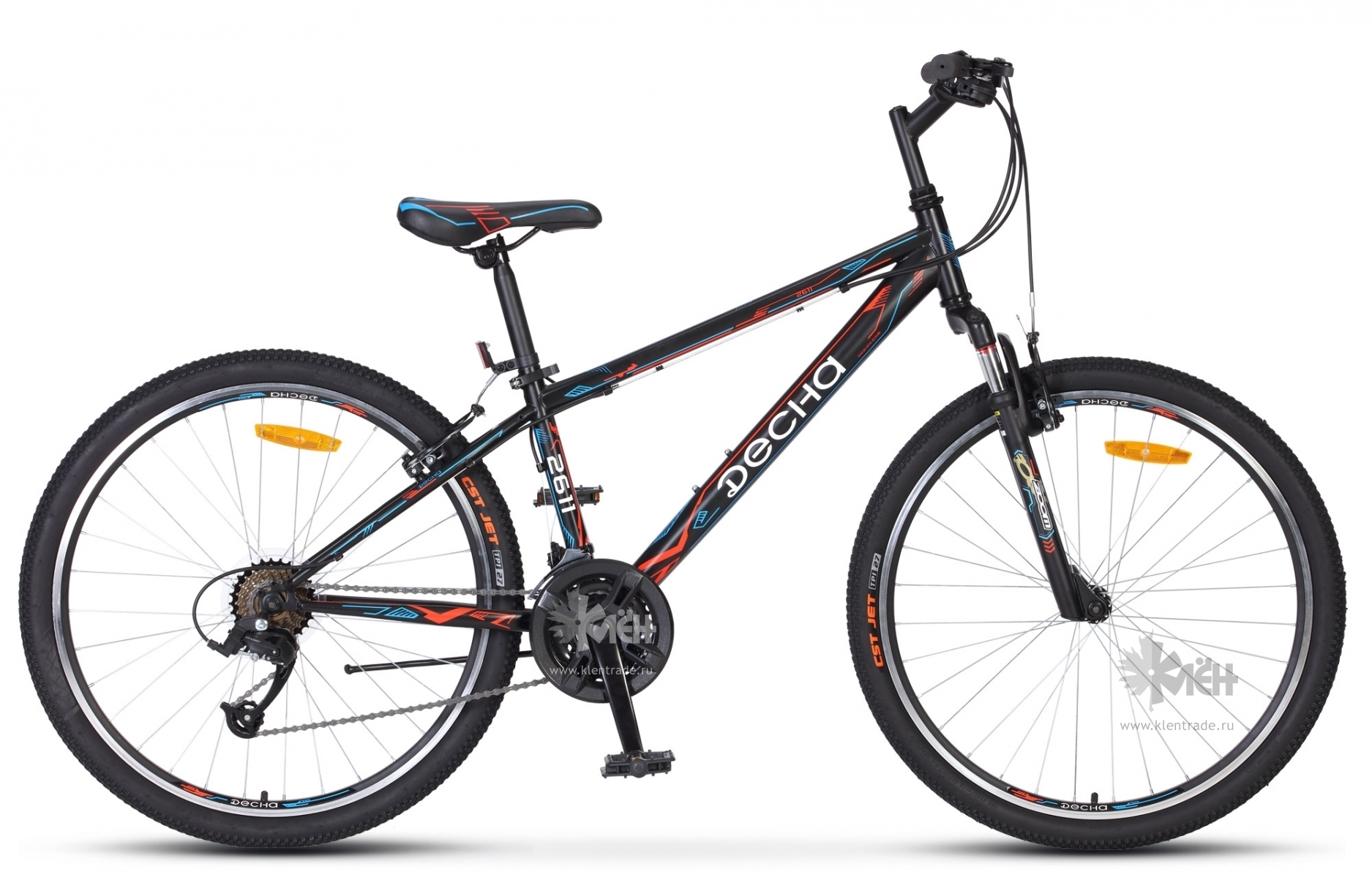 Для любого велосипеда огромное значение имеет надежность системы торможения. В модели Десна 2611 V 26 V010 (2018) установлена ободная система V-образного типа. Она легко настраивается и действует эффективно в полевых условиях. При небольшом нажатии на рычаги тормоза райдер спокойно может контролировать скорость байка на спусках, а в тех случаях, когда требуется резкое торможение, достаточно резко сжать тормозные рычаги на руле. При езде стоит помнить только об одной особенности ободных тормозов: при намокании колодок или нанесении на них грязи эффективность торможения немного снижается. Тем не менее, ободная V-образная тормозная система – оптимальное решение для данной модели.
