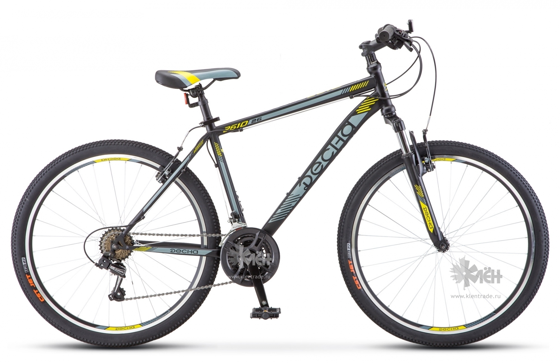 Десна 2610 – это многоскоростной байк, у которого доступна 21 передача. Управление переключателями происходит с помощью рычажных шифтеров на руле. Здесь установлены японские модели Shimano ST-EF41, а в качестве переключателей также применяются комплектующие Shimano серии Tourney. 21 скорость получается за счет стальной трехзвездной системы и семизвездной кассеты. Правильный выбор передачи обеспечивает комфортное передвижение райдера по ровной дороге, спуске с горок, а также при преодолении подъемов.