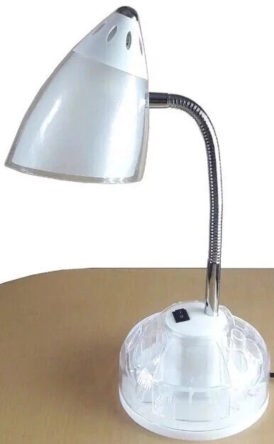 Настольный светильник под лампу с цоколем Е27 с пластиковым плафоном удлиненной конусной формы на подставке-пенале . Устойчивая подставка содержит много глубоких ячеек для ручек , канцтоваров или различных мелочей. Оснащен полностью пружинным стволом, который позволяет регулировать угол наклона плафона в любом направлении. Высококачественный керамопластиковый патрон обеспечивает надежный контакт и легкость вкручивания лампы. Регулировка угла освещения осуществляется за счет гофрированного оцинкованного ствола. Поставляется в разных цветах. Предназначен для направленного стабильного освещения рабочей поверхности.