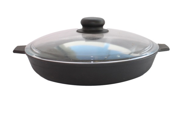 Сковорода чугунная d24см. Камская У4042 2 ушка, стекл. крышка