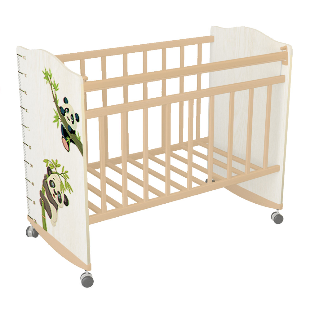 Кроватка детская Морозко "Панды" кол.+кач., фигурн.спинка, слон.кость