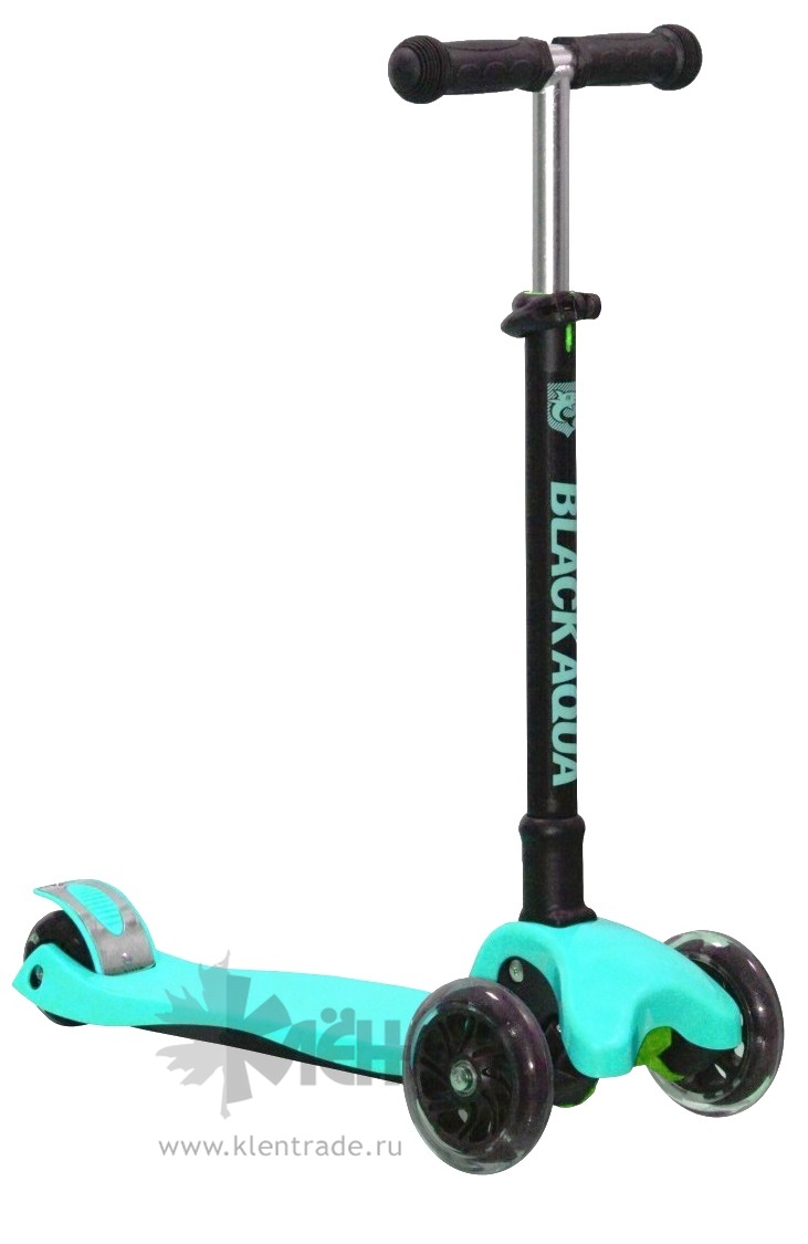 Самокат 3-ёх кол. Black Aqua MG004 складной, руль 72-88см., светящ.кол., бирюзовый