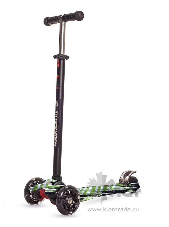 Самокат 3-ёх кол. Black Aqua MG014 руль 75-85см., светящ.колёса, зелёные полосы