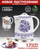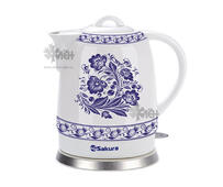 Корпус электрического чайника SAKURA SA-2008B-1 выполнен в белоснежном керамическом корпусе с ярким контрастным узором. Чайник буквально поднимает настроение своим притягательным видом. Легкий вес SAKURA SA-2008B-1 позволяет держать прибор в руке максимально комфортно. Долговечность и прочность приятно характеризуют этот бытовой прибор.