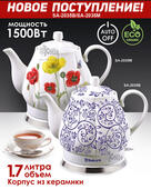 Цветочное решение оформления дизайна чайника SAKURA SA-2035В принесет только положительные эмоции от пользования прибором. Яркие колоритные узоры безупречно смотрятся на белоснежном фоне.