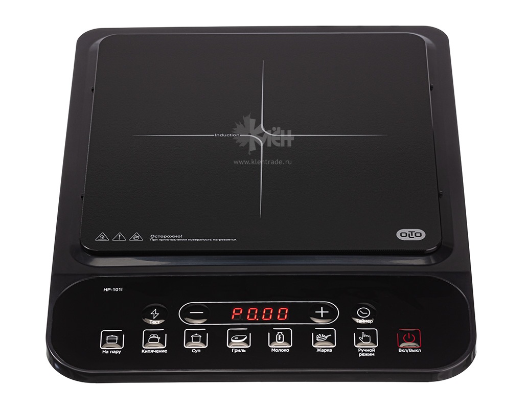 Индукционная одноконфорочная плита OLTO HP-101I нагревает посуду (кастрюлю, сковороду), а не поверхность плиты.