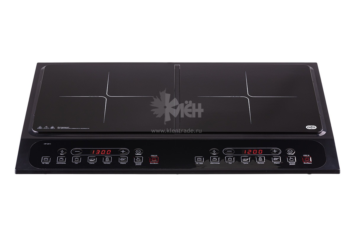 Индукционная двухконфорочная плита OLTO HP-201I нагревает посуду (кастрюлю, сковороду), а не поверхность плиты.