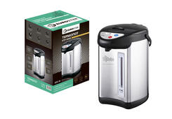 Термопот Eurostek ETP-050S это незаменимый кухонный прибор, успешно сочетающий в себе функции чайника, термоса и кулера. Как и чайник, он нагревает воду, как термос, может поддерживать её температуру на заданном пользователем уровне. Конструкция термоса включает в себя полностью стальной корпус. Нержавеющая сталь корпуса не подвержена коррозии и сохраняет природный вкус чистой воды.