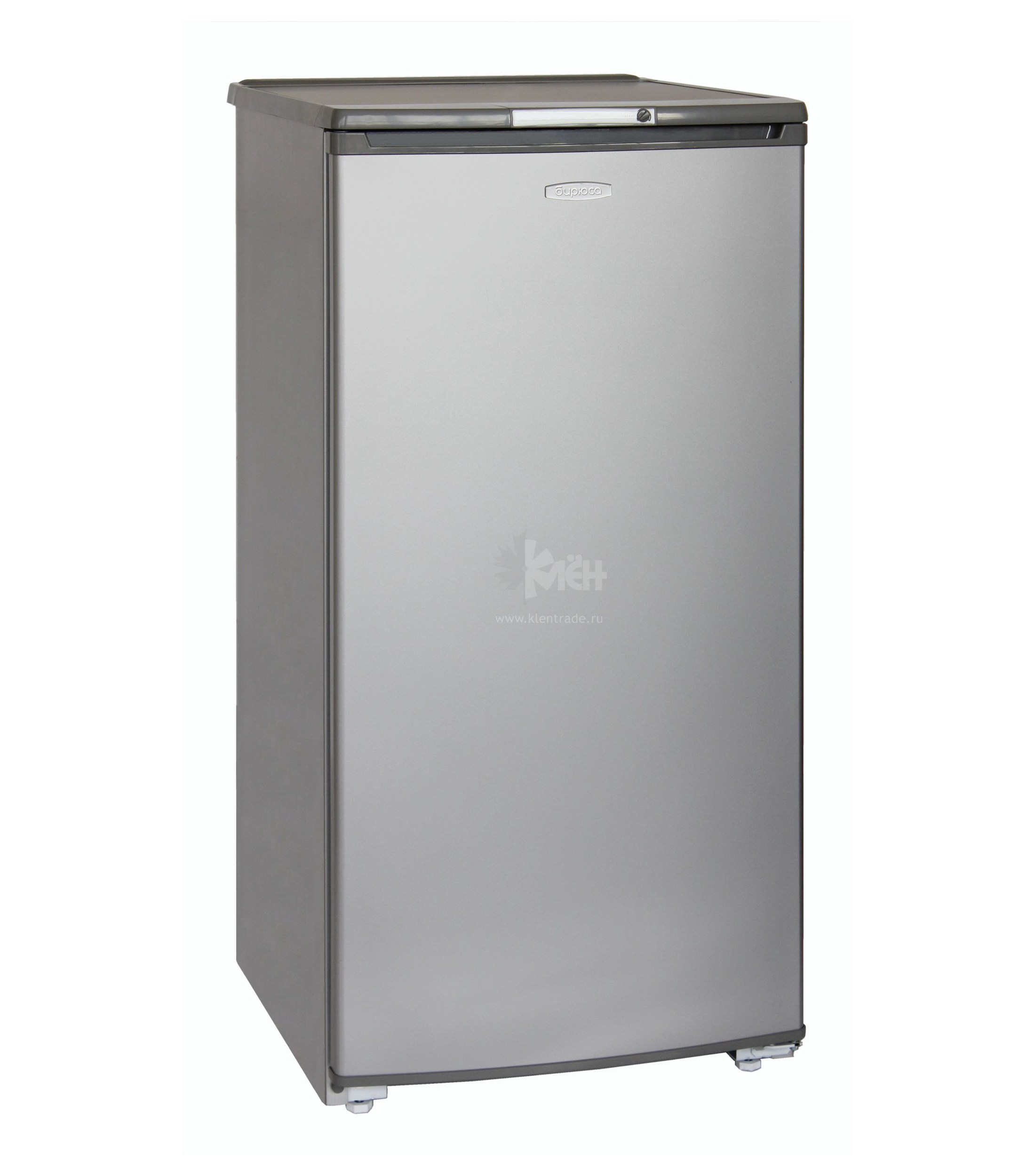 Однокамерный холодильник Бирюса M10 выполнен в цвете "металлик". Морозильная камера расположена в верхней части.
