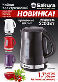 Электрический чайник SAKURA SA-2343R выполнен в корпусе из термостойкого пластика. Прибор выполнен в стильном дизайне ярко-красного цвета. Эргономичность и безупречная форма будет уместно смотреться в любом интерьере. Чайник SAKURA SA-2343R безопасен в использовании, он автоматически отключится при закипании или при минимальном количестве воды.