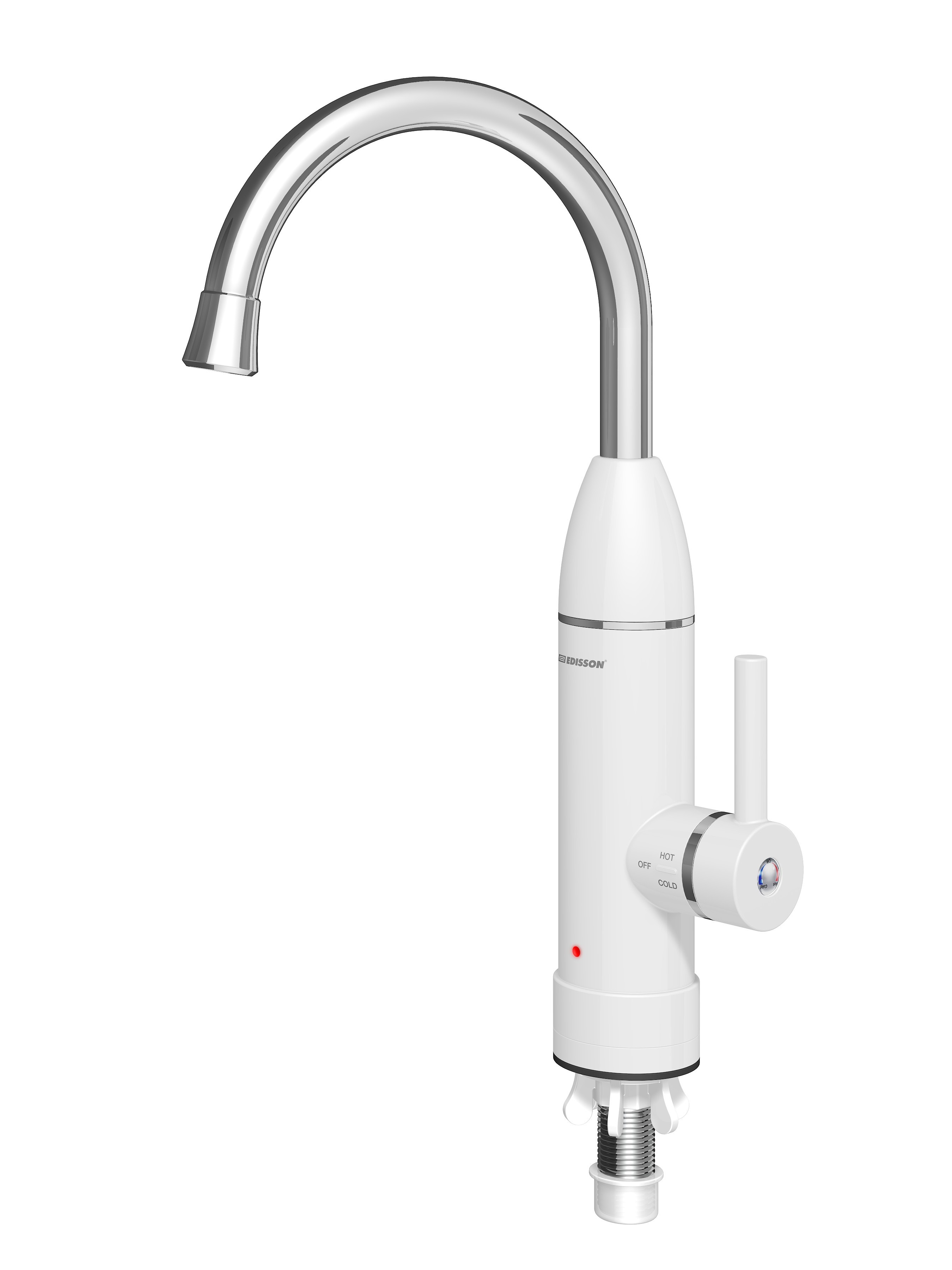 Водонагреватель Edisson Mini 3000 используется для нагрева проточной воды, вода нагревается сразу при проходе через него. Номинальная мощность водонагревателя – 3 кВт, водонагреватель подключается к розетке.