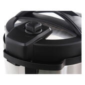 Модель обладает современным сдержанным дизайном, металлический корпус долговечен, устойчив к повреждениям и не требователен к уходу. На крышке расположена ручка для переноски. Мультиваркой удобно пользоваться даже в ограниченном пространстве, при необходимости её можно убрать, взять с собой на дачу или в загородный дом.