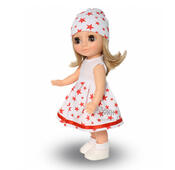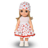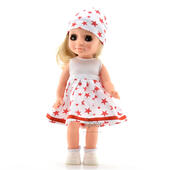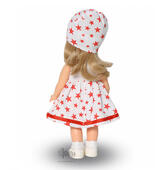 Кукла Ася 3 представлена в летнем комплекте одежды. Элегантное и милое безрукавное платье, отстроченное тесьмой по подолу. Подобраны в тон шапочка, носочки и туфельки. Кукла подходит для разнообразных сюжетно-ролевых игр ребёнка.