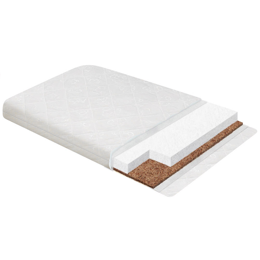 Вторая сторона представлена плитой из кокосового латексированного полотна это материал полностью растительного происхождения. Латексная пропитка делает плотное кокосовое волокно эластичным и устойчивым к деформации. Материал не накапливает влагу, не крошится и не образует пыли, обеспечивая отличную вентиляцию, гигиеничность и высокие ортопедические свойства, важные для малышей.
