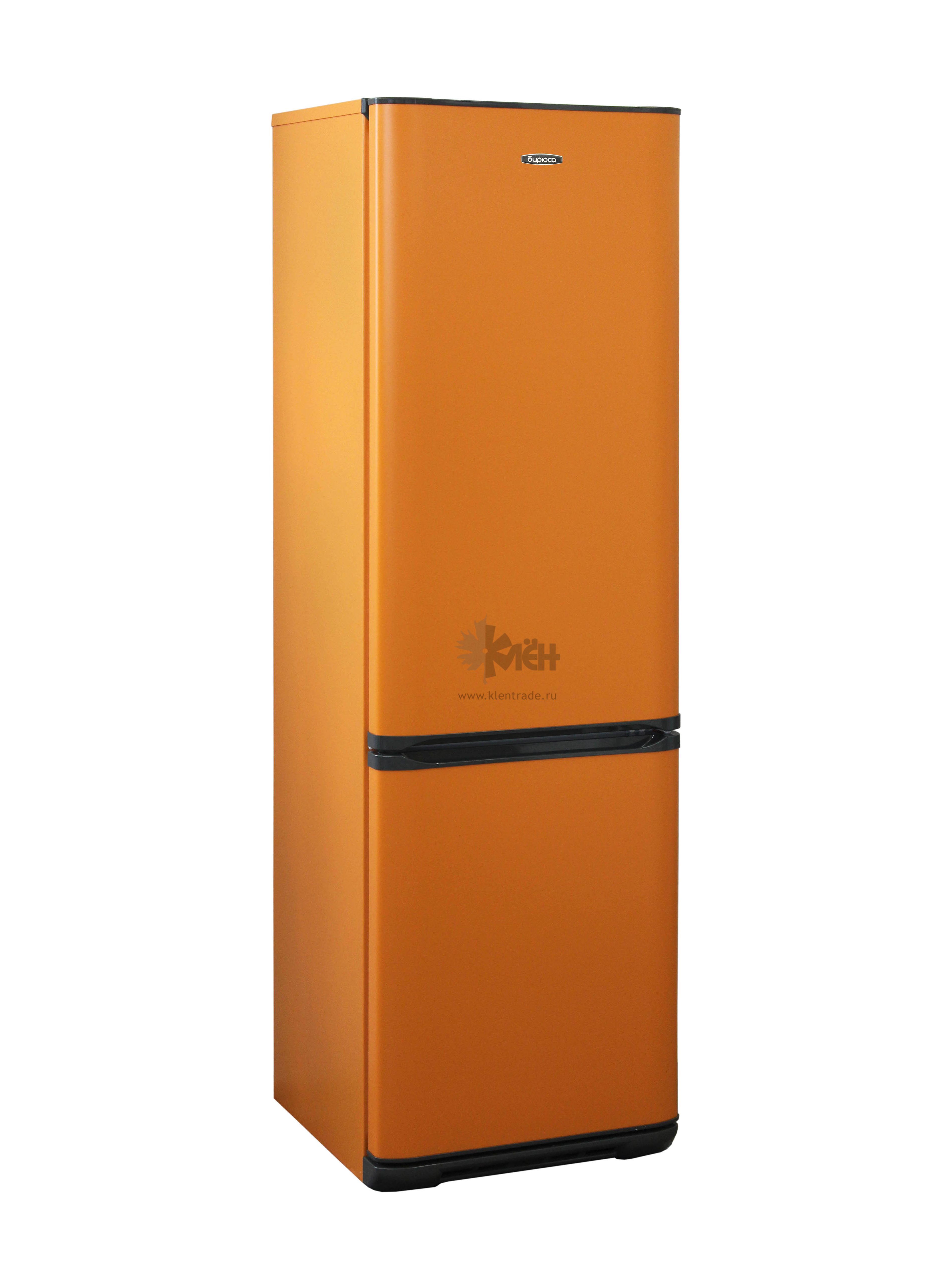 Двухкамерный холодильник Бирюса 360TNF с морозильником, расположенным в нижней части. Модель выполнена в стильном оранжевом цвете. Габариты устройства: