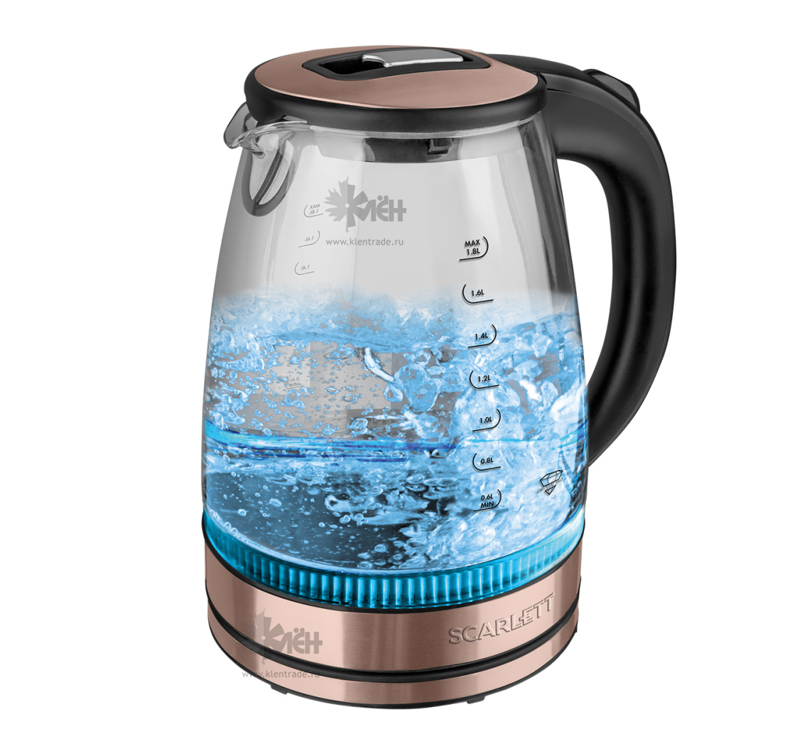Электрический чайник SCARLETT SC-EK 27 G43, объемом 1,8 литра выполнен в элегантном дизайне и оснащен яркой внутренней подсветкой во время работы. Это решение позволит прибору стать настоящим элементом интерьера на кухне!