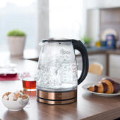 Марка стекла CRYSTAL PRO - высококачественные материалы, которые позаботятся о качестве воды и прослужат долго и качественно. Увеличенный объем сделает прибор идеально подходящим для использования большими компаниями или в офисе! А уникальный дизайн будет радовать глаз каждый день: корпус и крышка декорированы сталью в трендовом цвете "розовое золото"!