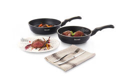 Сковорода выполнена из литого алюминия - толщина стенок 3,0 мм, дна 4,5 мм - данный материал равномерно сохраняет и распределяет тепло, а также делает посуду данной коллекции прочной и долговечной.