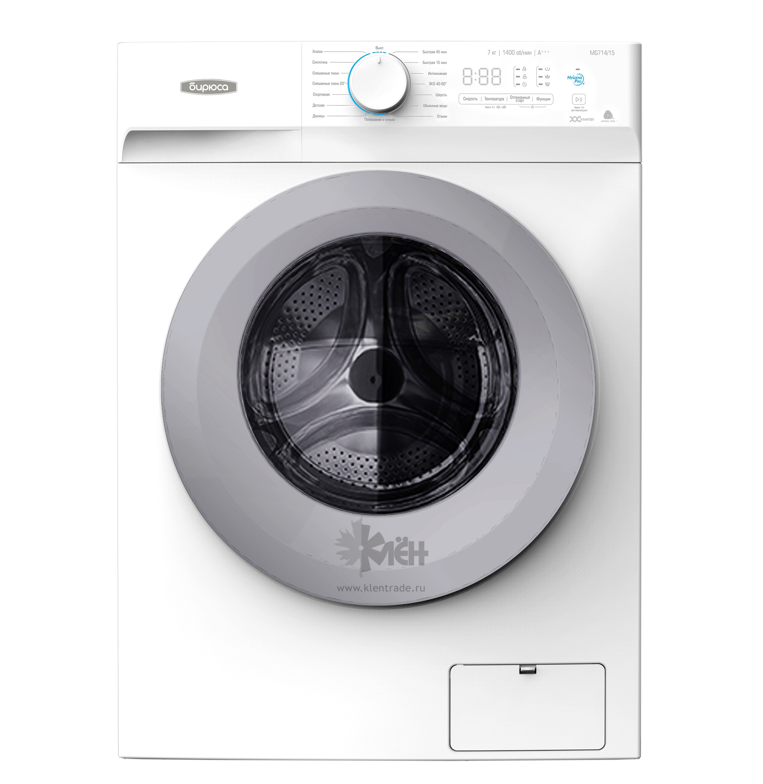 Стиральная машина Бирюса WM-MG714/15 обладает фронтальной загрузкой и способна вместить до 7 кг белья за один цикл работы, класс эффективности стирки данной модели A. Максимальная скорость вращения барабана при отжиме составляет 1400 оборотов в минуту.