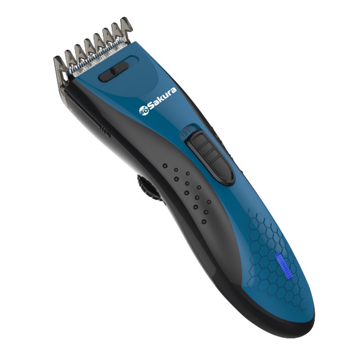 Набор для стрижки SAKURA SA-5175BL предназначен для ухода за волосами. Специальная насадка позволяет установить длину среза волос.