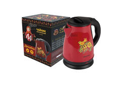 Цветочное решение оформления дизайна чайника МАТРЕНА МА-003 "Хохлома", на корпусе бордовой расцветки, принесет только положительные эмоции от пользования прибором. Чайник станет прекрасным подарком и поводом собрать всех за столом. Оптимальная вместительность электрического прибора на 1.7 литра позволит угостить целую компанию горячими напитками.
