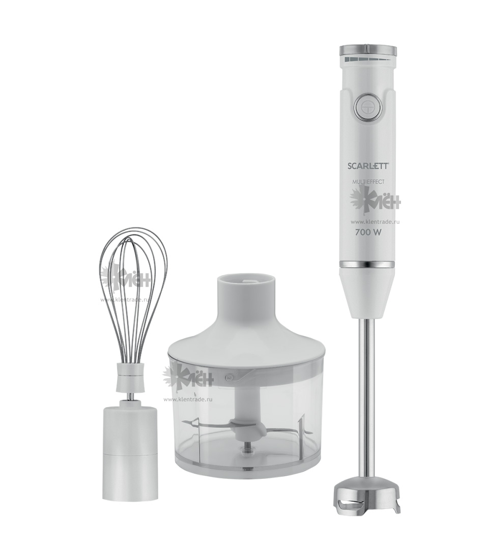 Погружной блендер SCARLETT HB 42F 91 оснащён мощным мотором 700 Вт, к нему прилагается мини-измельчитель и венчик, с помощью которых можно измельчать продукты, готовить тесто, взбивать крем, выполнять другие задачи.