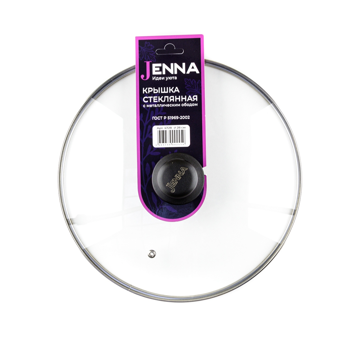 Крышка d28 стеклянная с металл.ободком и пароотводом JENNA 4728