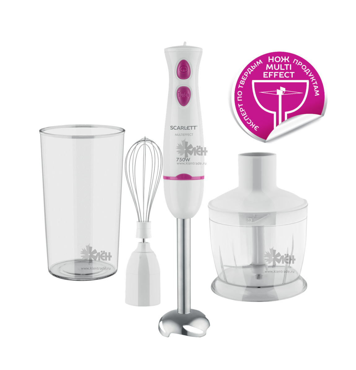 Блендер оснащен ножом MULTI EFFECT с двумя укороченными вертикальными лезвиями для переработки самых твердых продуктов.