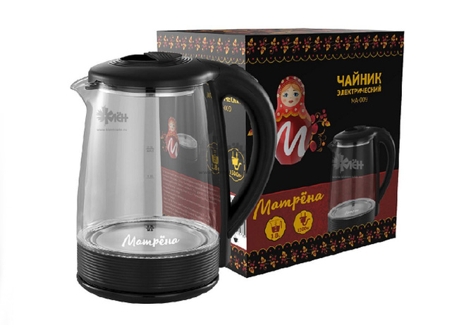 В чайнике МАТРЕНА МА-009 используется система многоуровневой безопасности - автоотключение при закипании, а также защита от включения без воды, если вы по неосторожности попытаетесь включить прибор не наполненным.